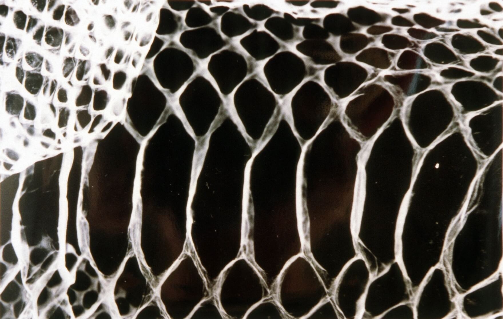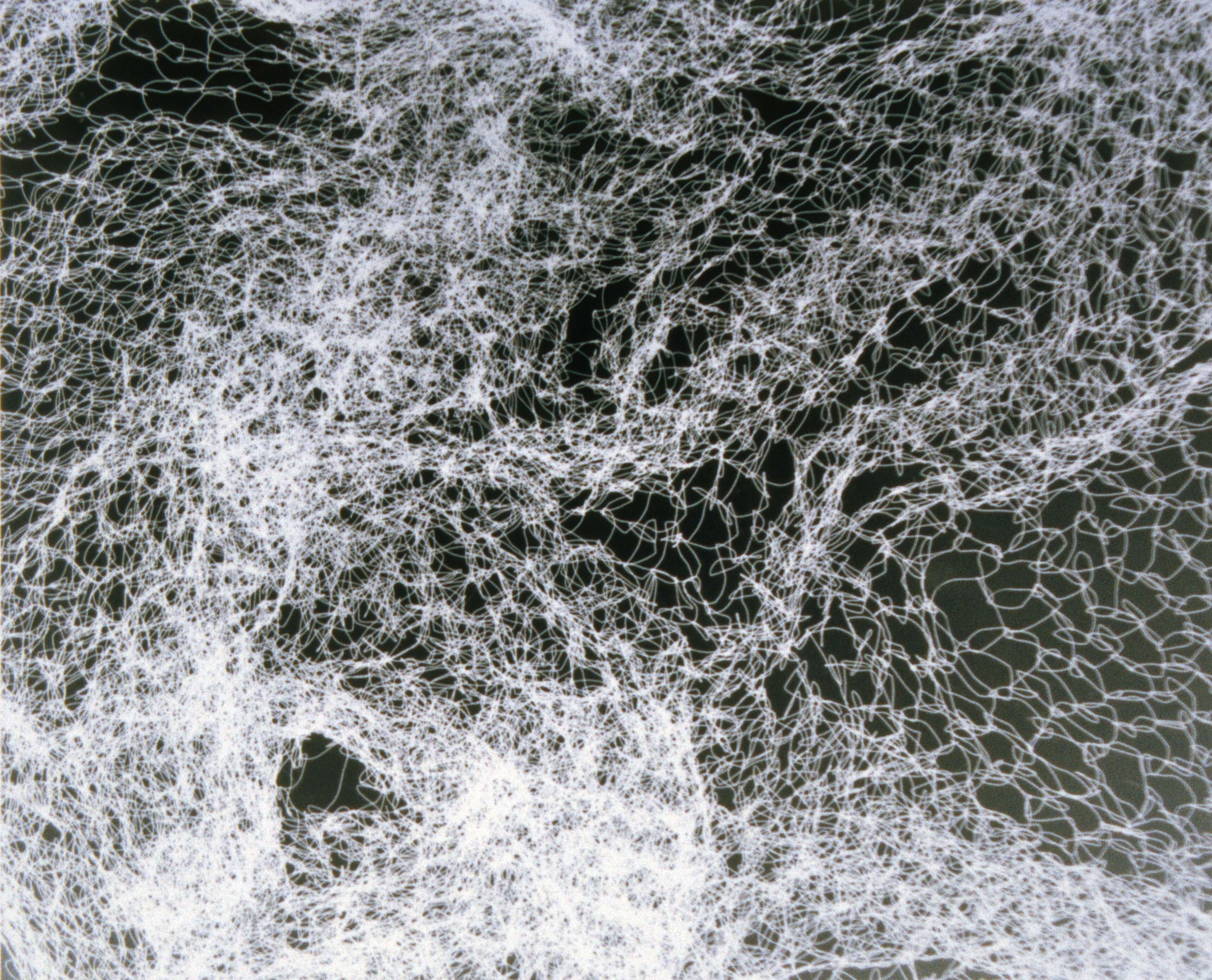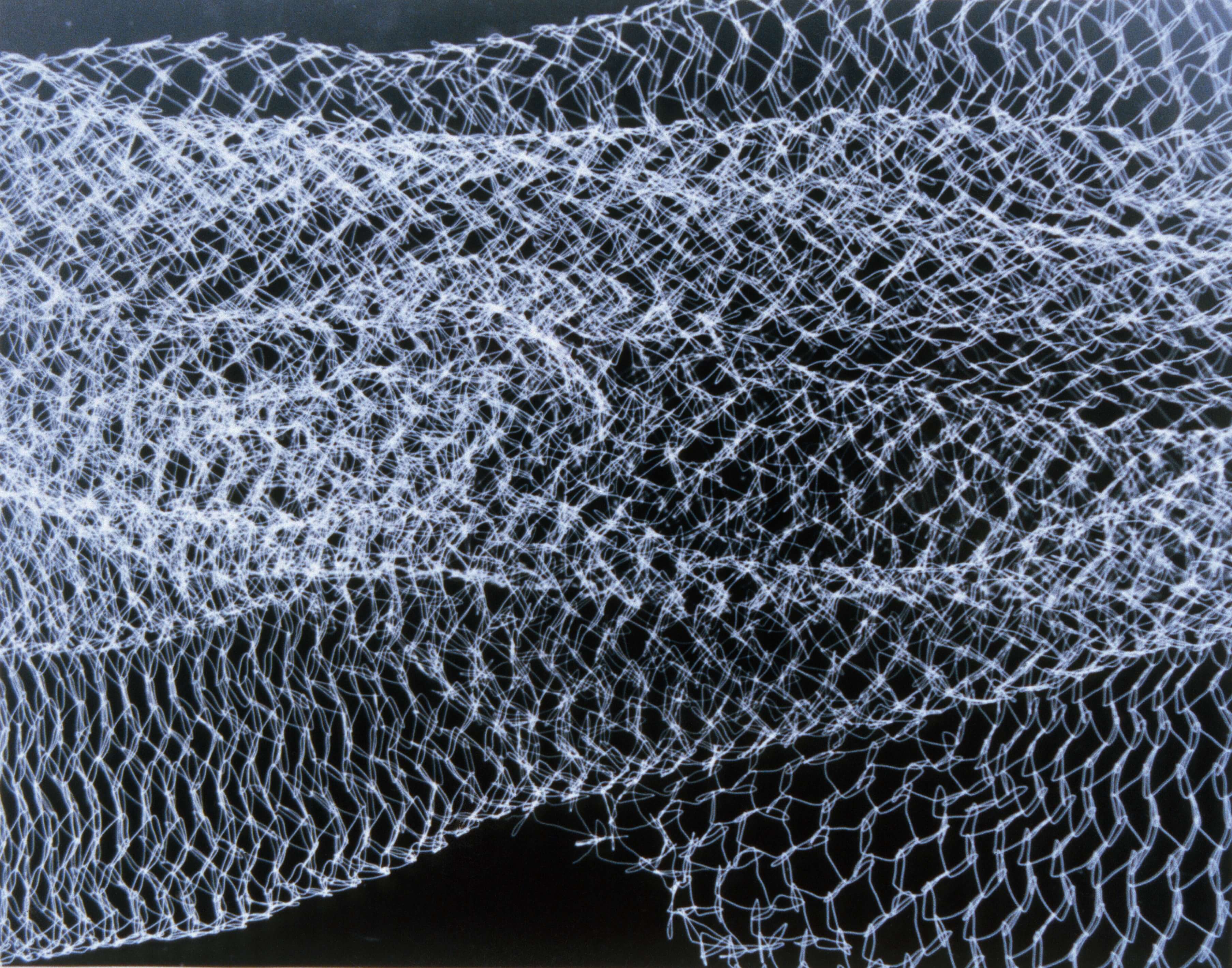 These images are made by placing netting directly on top of the photographic paper without using a negative therefore each work is a one-off. I like the rhythm thats formed by the overlapping and twisting of the nets and the very delicate white lines that mimic calligraphic stokes.
